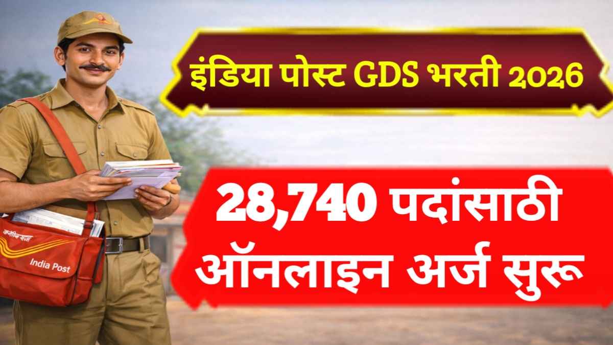 इंडिया पोस्ट GDS भरती 2026 : 28 हजार 740 पदासाठी ऑनलाईन अर्ज सुरू संपूर्ण माहिती मराठीत